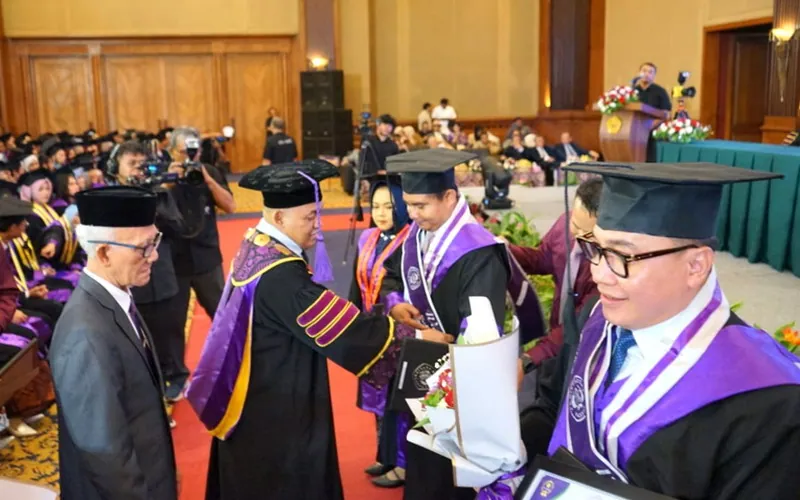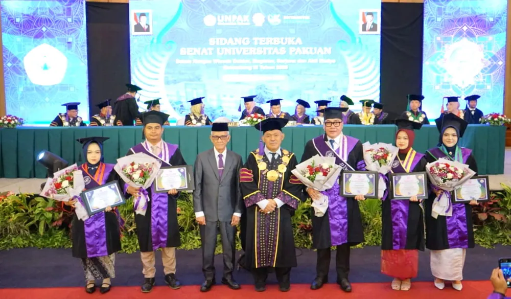 UNPAK — Universitas Pakuan (Unpak) menggelar prosesi wisuda untuk 1.325 lulusan dari berbagai jenjang pendidikan. Kegiatan wisuda kali ini berlangsung di Gedung Puri Begawan, Bogor, Rabu, 26 November 2025.